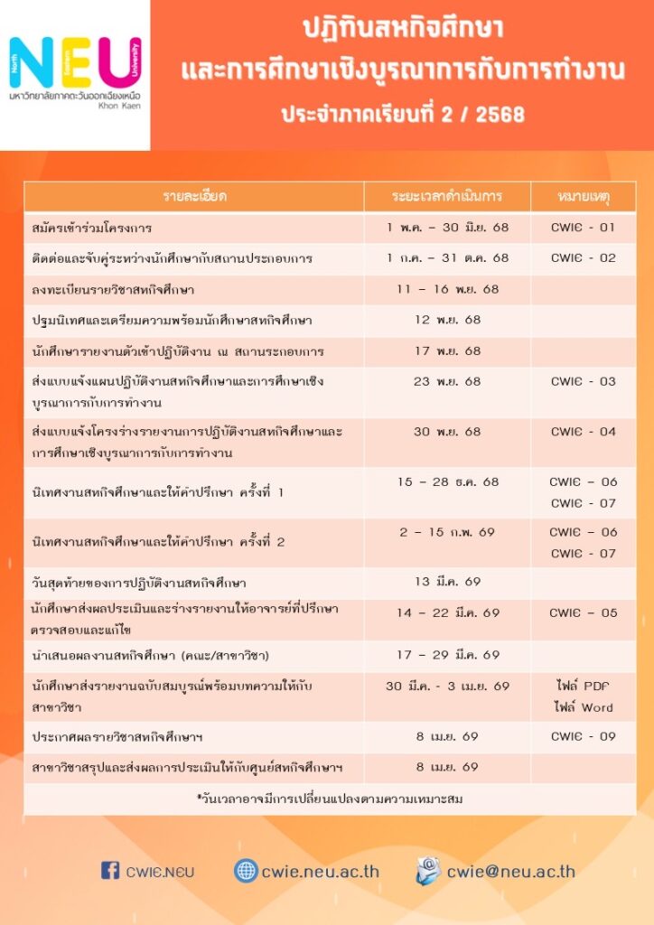 ปฏิทินสหกิจศึกษา ประจำภาคเรียนที่ 2/2568